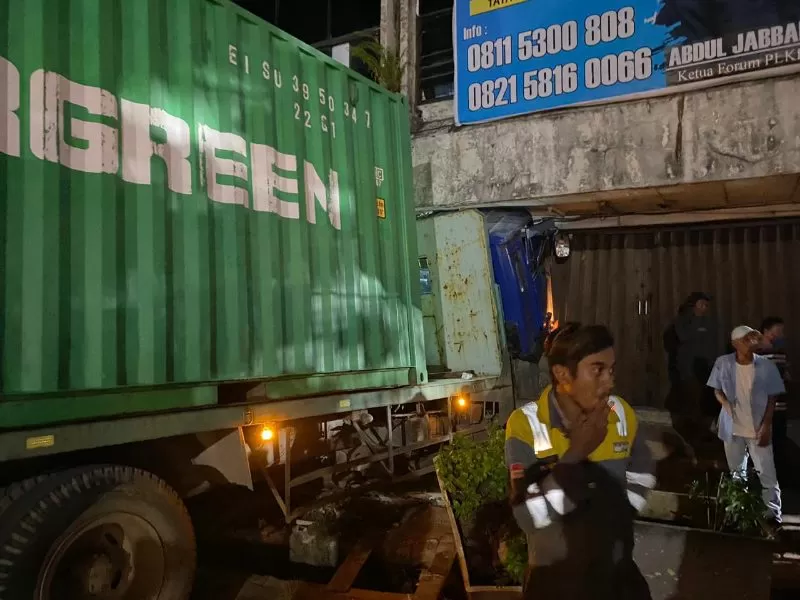 Sementara truk kontainer baru berhenti setelah menabrak bangunan ruko tempat kursus.