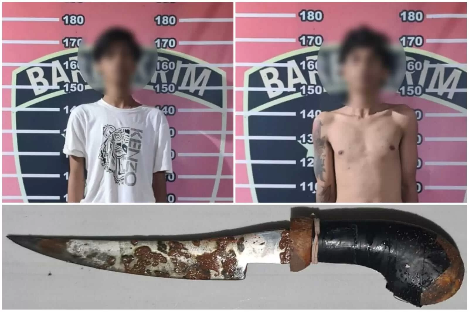 "Kemudian, pada hari Kamis 4 Januari 2024, personel gabungan Unit Reskrim Polsek Sungai Pinang, Unit Jatanras Sat Reskrim Polresta Samarinda dan Subdit Jatanras Ditreskrimum Polda Kaltim mendapatkan petunjuk keberadaan tersangka dan langsung melakukan upaya penangkapan terhadap 2 tersangka beserta barang bukti 1 bilah pisau belati di salah satu rumah di Kecamatan Anggana Kabupaten Kukar," ujarnya.