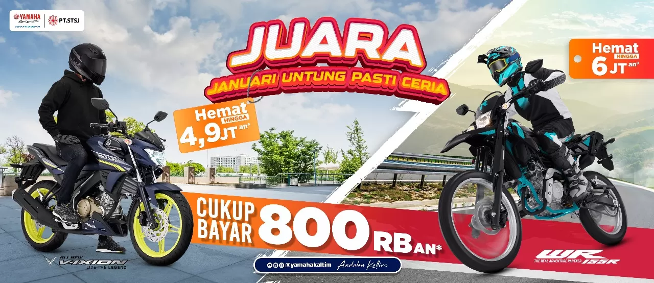 “Kami sudah siapkan promo spesial bagi kalian yang berjiwa sporty dan petualang. Untuk itu dengan promo Juara, Januari pasti ceria akan memudahkan kalian untuk memiliki Yamaha Vixion dan WR 155 R,” terang Asisten Manajer PT STSJ Main Dealer Yamaha Kaltimtara, Efendy Ariadi.