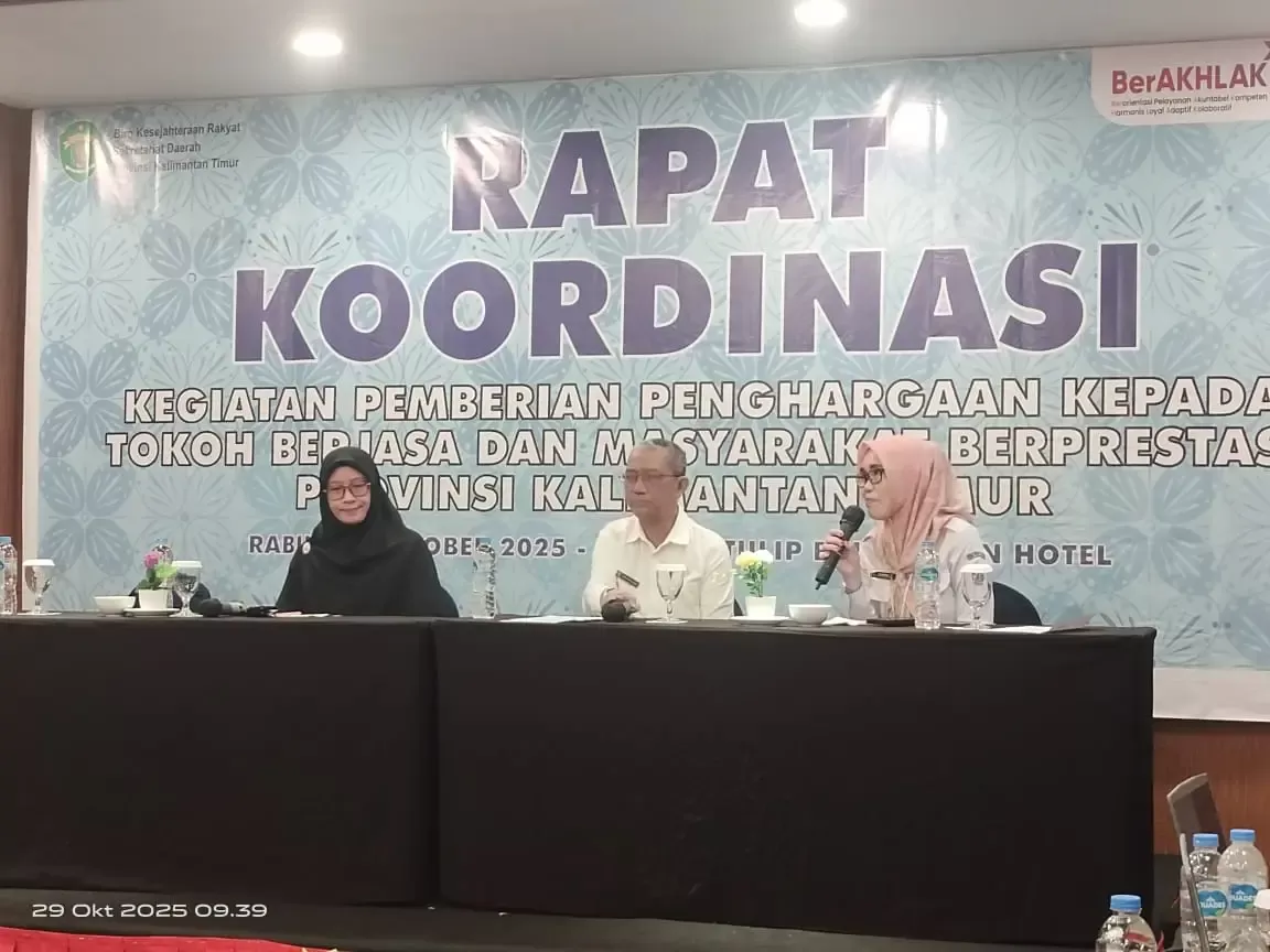 BALIKPAPAN - Pemerintah Provinsi Kalimantan Timur (Pemprov Kaltim) melalui Biro Kesejahteraan Rakyat (Kesra) Setda Kaltim menggelar rapat koordinasi pemberian penghargaan kepada tokoh berjasa dan masyarakat berprestasi di provinsi Kalimantan Timur (Kaltim).