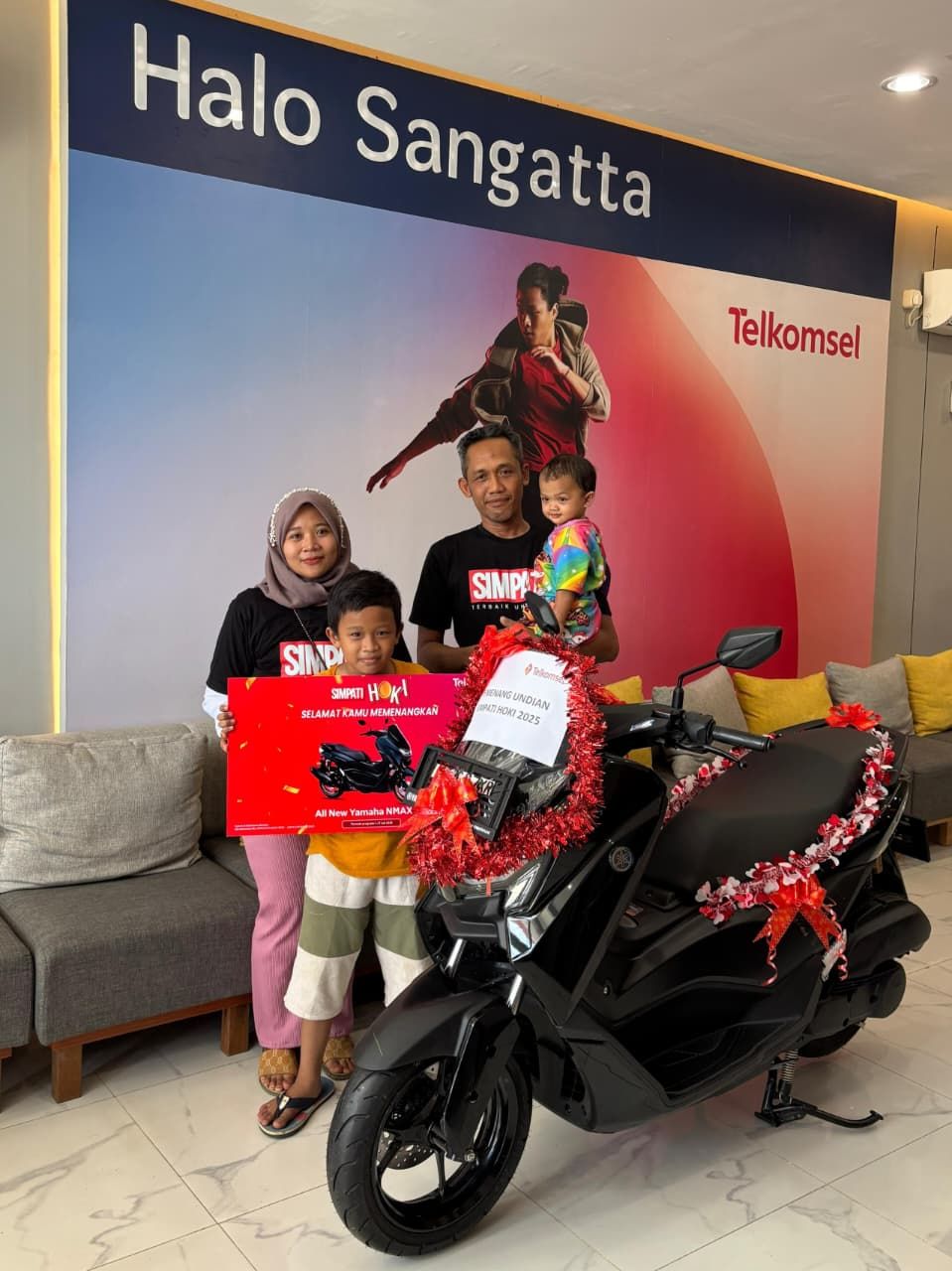 Sangatta, 9 Oktober 2025 – Pelanggan Telkomsel dari Muara Wahau Kutai Timur berhasil meraih hadiah 1 unit sepeda motor All New Yamaha NMAX 155 pada program undian SIMPATI HOKI periode Juli 2025.