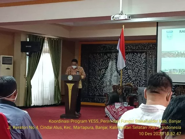 Rapat koordinasi ini diikuti oleh stakeholder Kab. Banjar, yang masuk dalam SK Bupati Banjar No. 188.45/479/KUM/2020, tentang Pembentukan Tim Koordinasi Daerah (District Coordination Team) Program YESS Kab. Banjar yang diketuai oleh Kepala Bappeda Litbang Kab. Banjar.