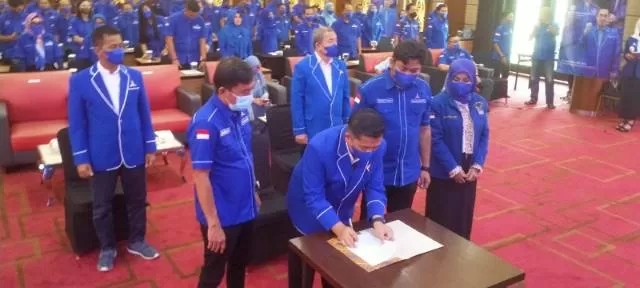 Pelantikan pengurus Dewan Pimpinan Daerah Partai Demokrat Provinsi Kalsel periode 2021-2026 sekaligus penandatangan dan penyerahan bendera pataka partai, dilangsungkan di Hotel Best western Kindai, Banjarmasin. Pelantikan DPD Partai Demokrat Kalsel juga berbarengan dengan Ketua DPD Partai Demokrat Gorontalo.(gmp)
