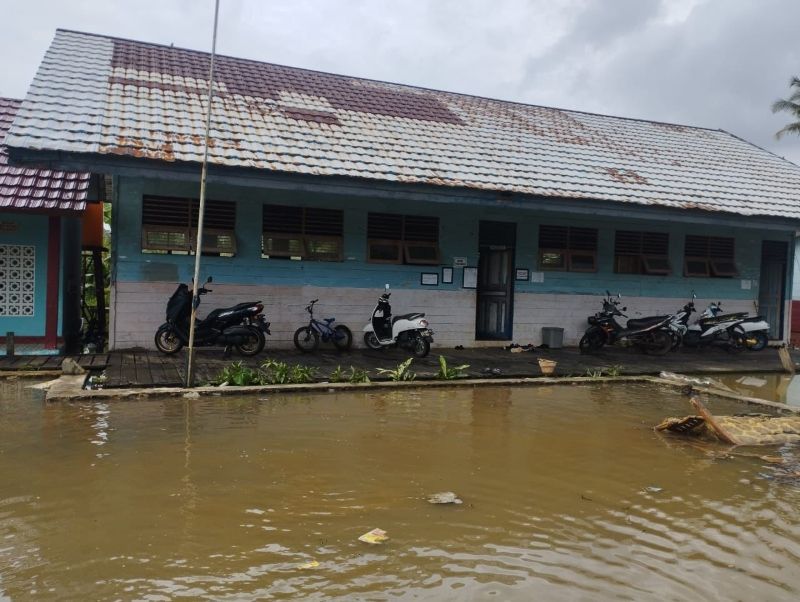 Beberapa sekolah di Tanah Bumbu ikut terendam banjir. Kondisi ini memaksa pihak sekolah untuk menghentikan aktivitas belajar mengajar sementara waktu.