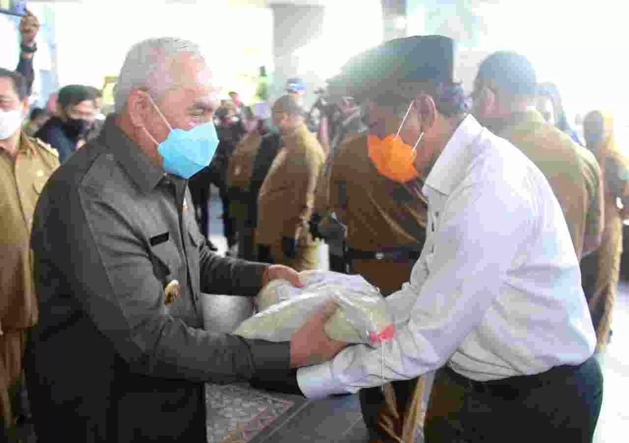 SAMARINDA, - Wakil Bupati Penajam Paser Utara (PPU) Hamdam menerima secara simbolis bantuan Cadangan Pangan Pemerintah (CPP) terhadap masyarakat pasca banjir dan pandemi covid 19 dari Pemprov Kalimantan Timur (Kaltim). Bantuan ini diserahkan langsung oleh Gubernur Kaltim, Isran Noor, yang dilaksanakan di Kantor Gubernur, Selasa, (23/6) pagi.