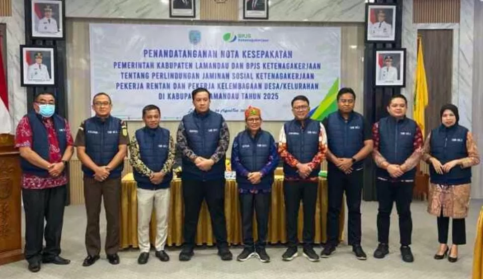 Penandatanganan nota kesepakatan tersebut berlangsung di Aula Setda Lamandau, Kamis (28/8/2025), disaksikan langsung oleh Bupati Lamandau, Rizky Aditya Putra, dan Kepala Kantor Wilayah BPJS Ketenagakerjaan Kalimantan, Erfan Kurniawan.