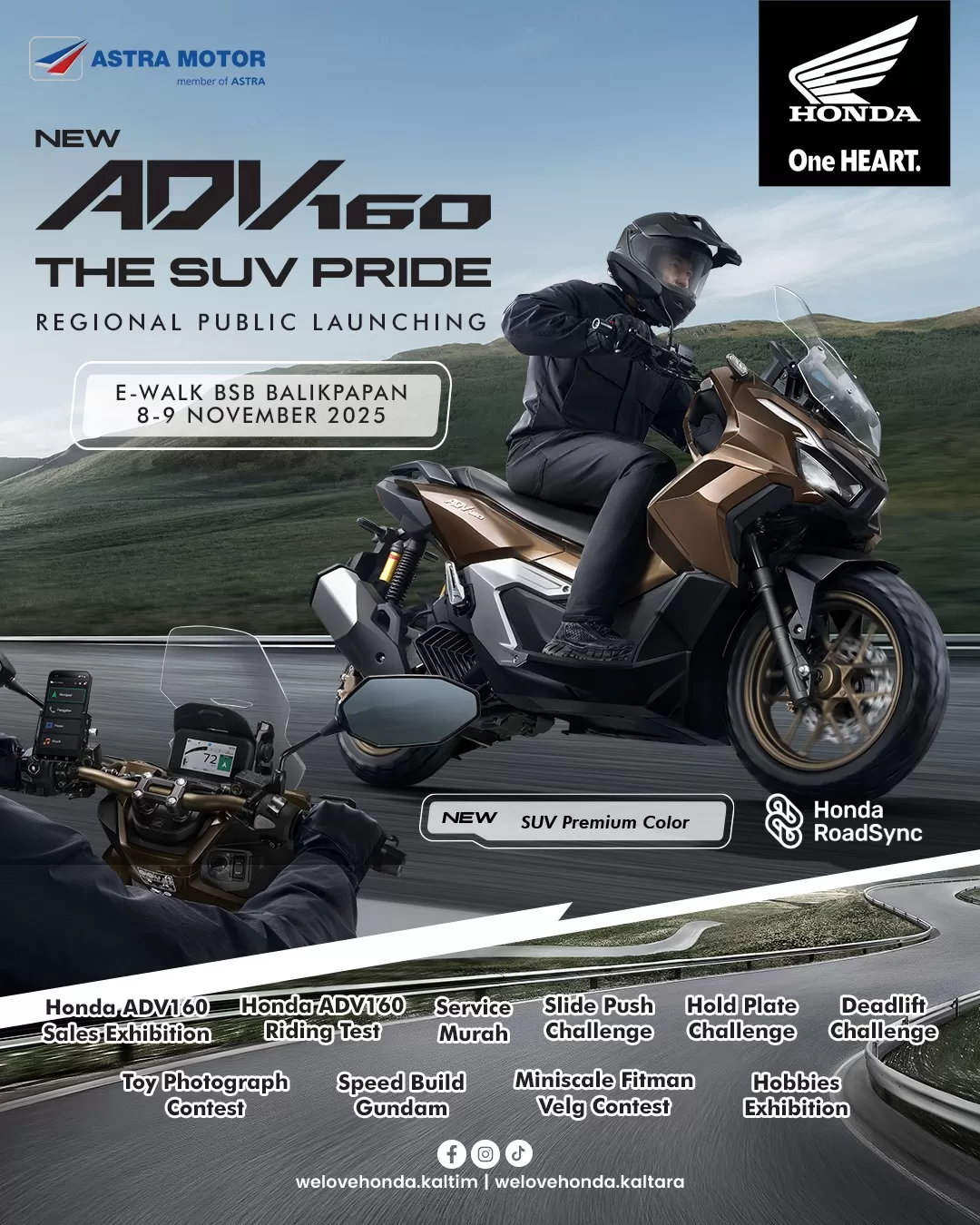 “Kami ingin memberikan pengalaman berbeda kepada masyarakat Balikpapan untuk lebih dekat dengan New Honda ADV160, sekaligus menghadirkan hiburan dan program menarik bagi konsumen setia Honda,” ujar Matthew Poetera Sah selaku Manager Marketing Astra Motor Kaltim 1].