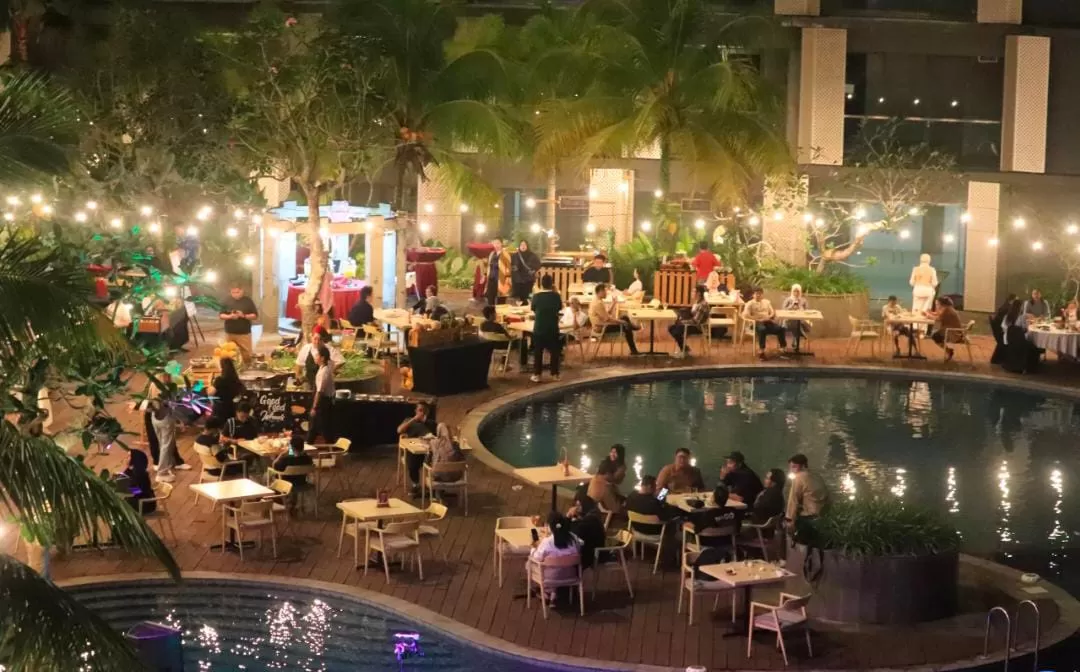 Tidak hanya itu, hotel juga menawarkan paket pesta malam Tahun Baru bertema “4 Zone Studio”, sebuah pengalaman makan sepuasnya yang menggabungkan empat zona atraksi: Ocean, Fire, Desert, dan Forest. Keempatnya terinspirasi dari kekayaan elemen Kalimantan dan disajikan secara kreatif di area poolside, menciptakan perayaan yang imersif dan penuh warna.