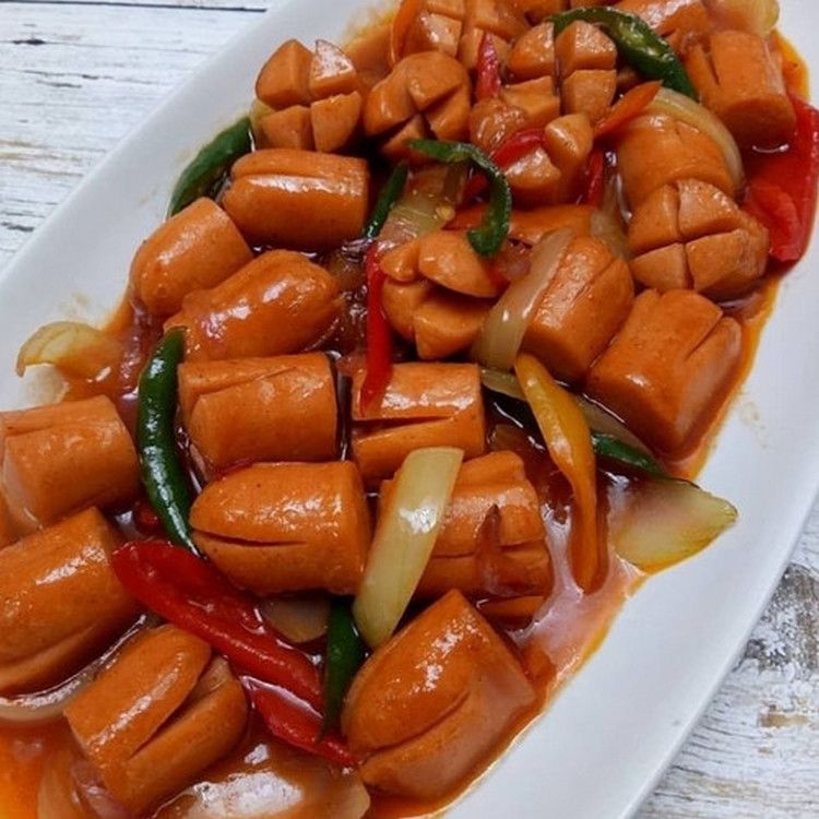4. Tambahkan sedikit air, masukkan sosis dan aduk. Angkat dan siap disajikan.