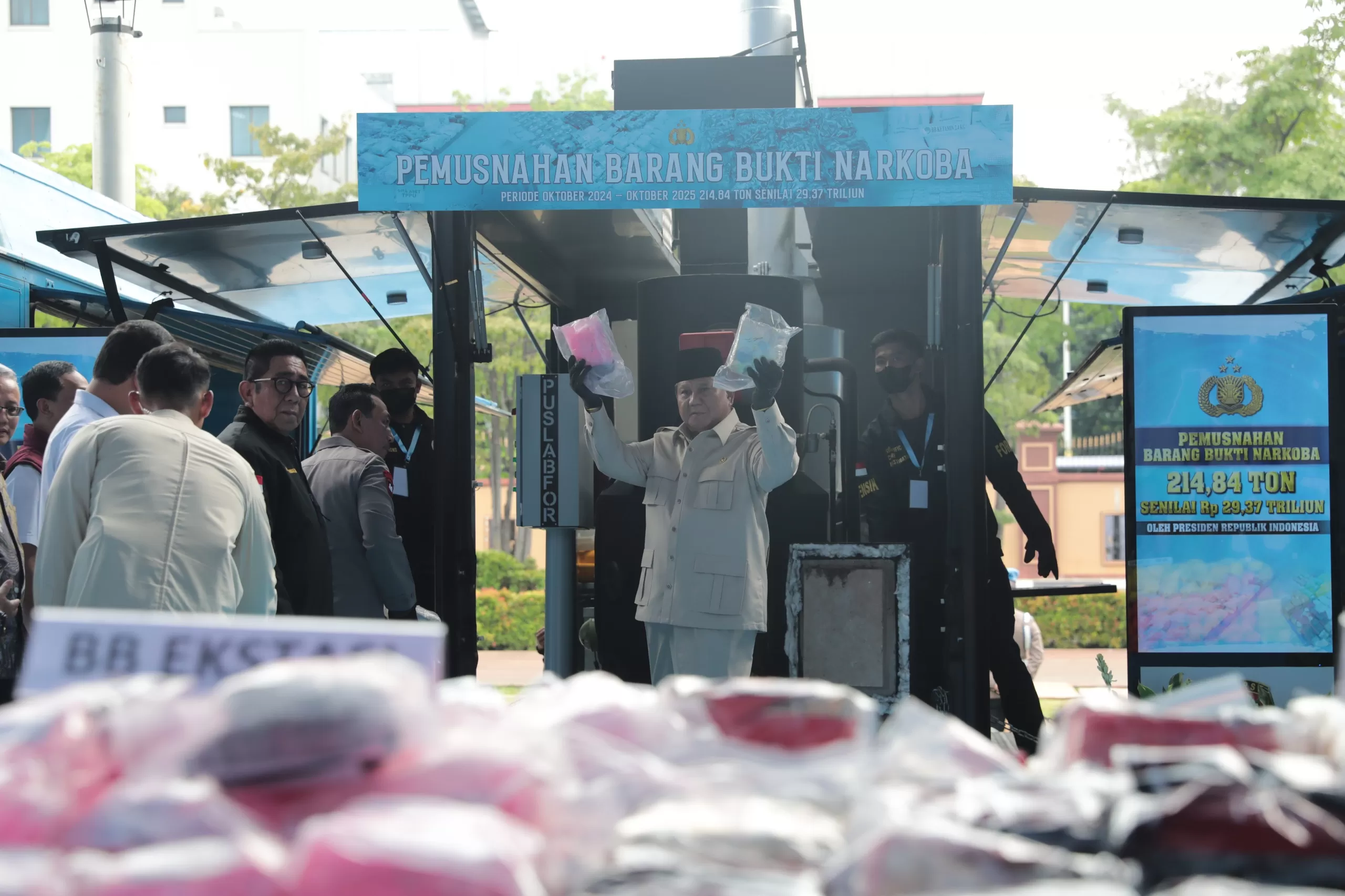 Hal tersebut disampaikan Prabowo dalam sambutannya usai menyaksikan pemusnahan barang bukti narkoba seberat 214,84 ton dengan nilai mencapai Rp29,37 triliun di Lapangan Bhayangkara, Mabes Polri, Jakarta Selatan, Rabu (29/10).